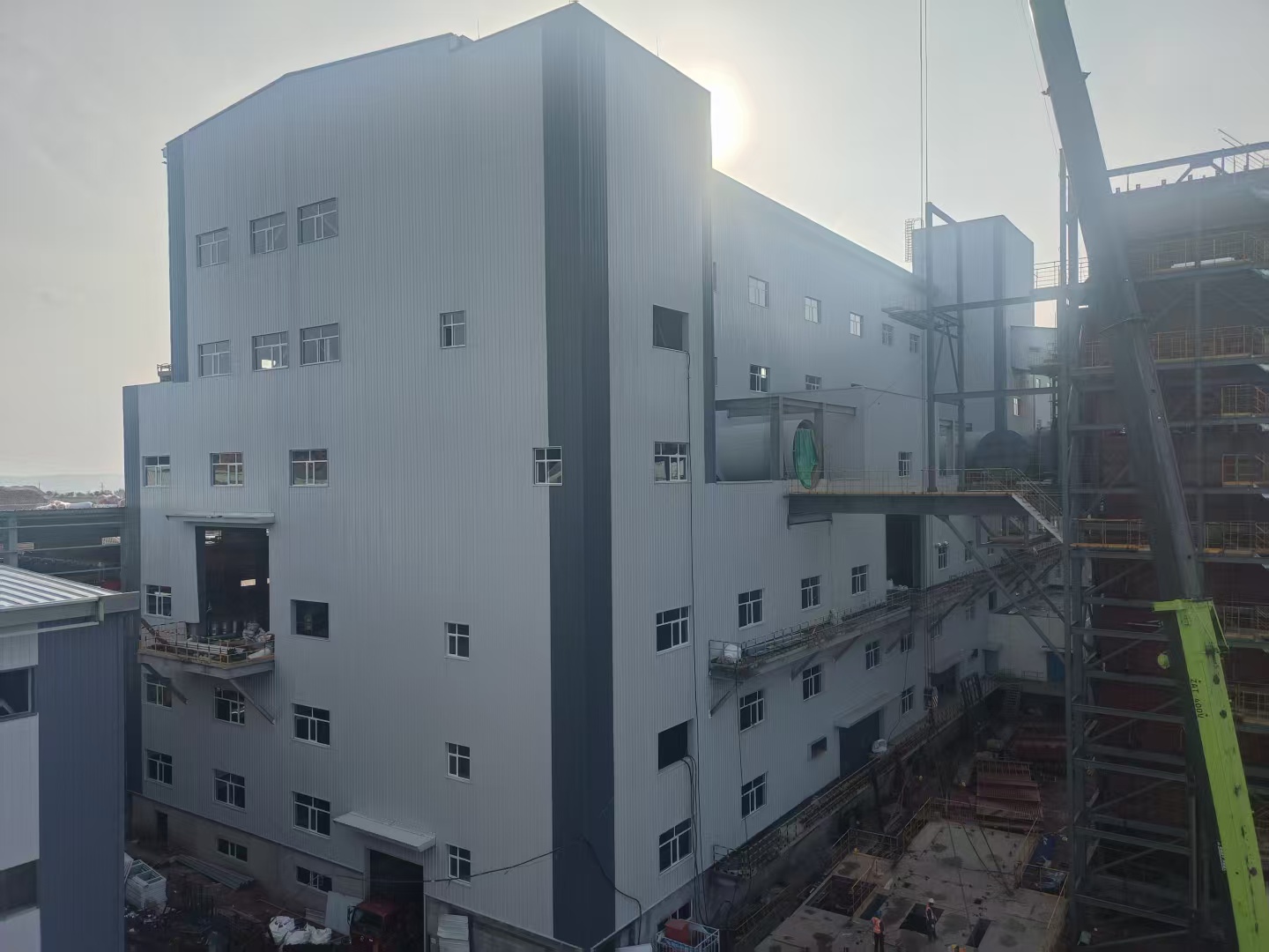 匯能硅鋁項(xiàng)目緊扣國(guó)家“雙碳”目標(biāo),將綠色理念融入發(fā)展實(shí)踐,持續(xù)探索以生態(tài)“含綠量”撬動(dòng)發(fā)展“含金量”其中,礦熱還原工程建筑面積4891平方米長(zhǎng)146米,寬33.5米,高45層鋼結(jié)構(gòu)是本項(xiàng)目最大的主廠房。施工過(guò)程中,針對(duì)礦熱還原工程施工戰(zhàn)線長(zhǎng)、混凝土澆筑體量大、施工工藝復(fù)雜等攔路虎,項(xiàng)目部團(tuán)隊(duì)提前優(yōu)化施工組織設(shè)計(jì)和施工方案,強(qiáng)化質(zhì)量巡檢、材料進(jìn)場(chǎng)檢驗(yàn)、安全每日監(jiān)管頻率,通過(guò)分區(qū)突擊、土建+專業(yè)”工序有效銜接、增派專業(yè)隊(duì)伍、實(shí)施進(jìn)度日考核等舉措,集中優(yōu)勢(shì)資源攻堅(jiān)推進(jìn),確保礦熱還原基礎(chǔ)在26天內(nèi)完成,主體結(jié)構(gòu)177天完成,跑出施工加速度。在此基礎(chǔ)上,項(xiàng)目部搶抓黃金施工期,節(jié)假日不停步,提前完成二次維護(hù)、裝飾裝修等關(guān)鍵節(jié)點(diǎn),土建工程就此全面完成。
