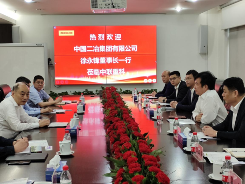 詹純新對徐永鋒董事長一行的到訪表示熱烈歡迎,并簡要介紹了中聯(lián)重科的發(fā)展歷史,以及中聯(lián)重科在工程機械、農(nóng)業(yè)機械、新材料三大板塊的定位與布局。他表示,十分歡迎中國二冶參與到中聯(lián)重科智慧產(chǎn)業(yè)城的建設,同時希望與中國二冶以項目合作為基礎,在更多的領域?qū)崿F(xiàn)全方位的深度合作。