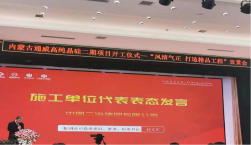 5月13日,中國二冶內(nèi)蒙古通威多晶硅二期項(xiàng)目開工,冶金分公司與內(nèi)蒙古通威多晶精硅有限公司等單位,共同舉辦了“風(fēng)清氣正 打造精品工程”項(xiàng)目開工儀式。公司紀(jì)委書記任文軍出席儀式并作表態(tài)發(fā)言,冶金分公司總經(jīng)理?xiàng)顚幖绊?xiàng)目部全體人員近40 余人參加開工儀式。