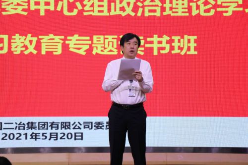 為深入貫徹落實(shí)黨中央重大決策部署,推動(dòng)公司黨史學(xué)習(xí)教育走深走實(shí),5月20日—5月21日,中國二冶黨委開展二季度黨委中心組政治理論學(xué)習(xí)暨黨史學(xué)習(xí)教育專題讀書研討班。公司黨委書記、董事長徐永鋒主持并在總結(jié)講話中提出具體要求。